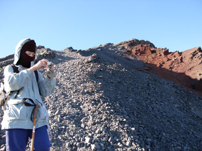 summit which consisted of small round balls volcanic